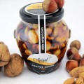 Miel de flores con frutos secos seleccionados, avellanas, nueces y almendras. Los frutos secos impregnan a la miel de su sabor característico. Un dulce para desayunos, postres, meriendas... pruébalo con queso, pan, yogurt, etc.